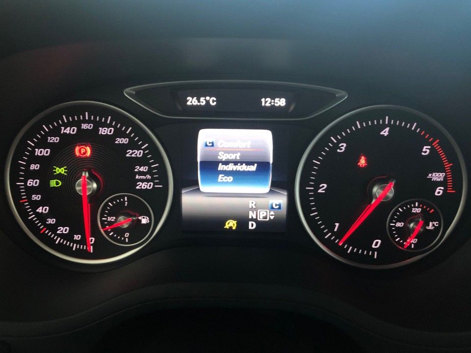 Volante y palanca de cambio en cuero Detector de asiento ocupado acompañante Conexión automática de luces de cruce Columna de dirección de ajuste manual en altura y profundidad Apoyabrazos delantero con compartimento Windowbags Alfombrillas de velours Cierre centralizado sistema ELCODE, telemando y apertura de emergencia ESP (Programa electrico de estabilidad) incluye ABS, ASR, BAS Attention assist (Sistema de alerta por cansancio conductor) Retrovisores exteriores eléctricos calefactados y asféricos en color carrocería Indicador de intervalos de mantenimiento ASSYST Función arranque y parada ECO Cristales calorífugos en todas las ventanillas Freno estacionamiento eléctrico con función de confort 7G-DCT Cambio automático de doble embrague. Incluye TEMPOMAT con SPEEDTRONIC y pulsadores de cambio en el volante. Airbags frontales para conductor y acompañante Collision Prevention Assist (Sistema de advertencia de colisiones) Dirección paramétrica con servodirección variable Elevalunas eléctricos con función de confort Fijación asientos infantiles ISOFIX y Top Tether Indicador de cambio de marcha óptimo Indicador de desgaste de pastillas de freno Kneebag (airbag de rodillas conductor) Ordenador de viaje con indicador de consumo actual Seguro infantil en puertas traseras y para elevalunas traseros Tirefit con bomba eléctrica de inflado Volante multifunción de confort de 3 radios con 12 teclas Luces de marcha diurnas rectangulares con diodos luminosos (LEDs) Luz de freno adaptativa parpadeante Tren de rodaje de confort Interfaz USB en apoyabrazos delantero Arranque sin llave Keyless-Go. Incluye función de cierre de confort de las ventanillas Control presión neumáticos ADAPTIVE BRAKE con función HOLD. frenos secos al conducir en días de lluvia y ayuda al arranque en pendientes ATTENTION ASSIST. Puede detectar síntomas típicos de fatiga analizando el comportamiento del conductor y advertirle de un aumento del cansancio o de las faltas de atención. Tela Vianen Línea Style. Asientos con zona de los hombros acentuada y tapizado de tela Vianen. Compartimento con tapa en la consola central. Conmutador de las luces de color negro de alto brillo con aro en cromo plateado. Cuadro de instrumentos con display multifunci Aire acondicionado con regulación manual de distribución de aire. Filtro antipolvo y conexión a recirculación con funcion confort (cierre automático de ventanillas) Audio 20 CD. Sistema multimedia con pantalla en color de alta definición de 8'', controlador en la consola central, radio con sintonizador doble y descodificador de información sobre el tráfico (TP/TA), unidad de CD (apta para MP3, WMA, AAC, WAV), dos con Módulo de comunicación para el uso de los servicios Mercedes connect. Preparación técnica para el uso mediante un smartphone de los servicios Mercedes connect me como, por ejemplo, consulta a distancia del estado del vehículo, localización del vehículo et Pelvisbag (airbag lateral de cadera/tórax para conductor y acompañante) Respaldos traseros abatibles 1/3:2/3 con indicador de bloqueo Sistema de llamada de emergencia Mercedes-Benz Reposacabezas trasero central escamoteable Faros LED High Performance Luneta trasera calefactable con mando con temporizador Display TFT de 20.3 cm (8'') Dynamic Select. Consta de 4 programas de conducción Reposacabezas delanteros y traseros ajustables en altura e inclinación Tomas de 12 V en compartimento portaobjetos en la consola central Tempomat con limitador variable de velocidad Remote Online. Preinstalación para servicios adicionales Mercedes connect me (no activados; servicios incluidos por 3 años) tales como supervisión geográfica del vehículo, localización del vehículo, cierre a distancia de las puertas, consulta a distancia