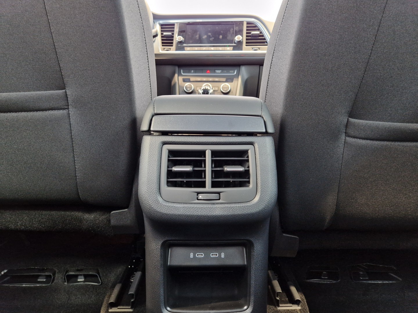 Reposabrazos en consola central con cajón integrado , posavasos y salidas de aires traseras