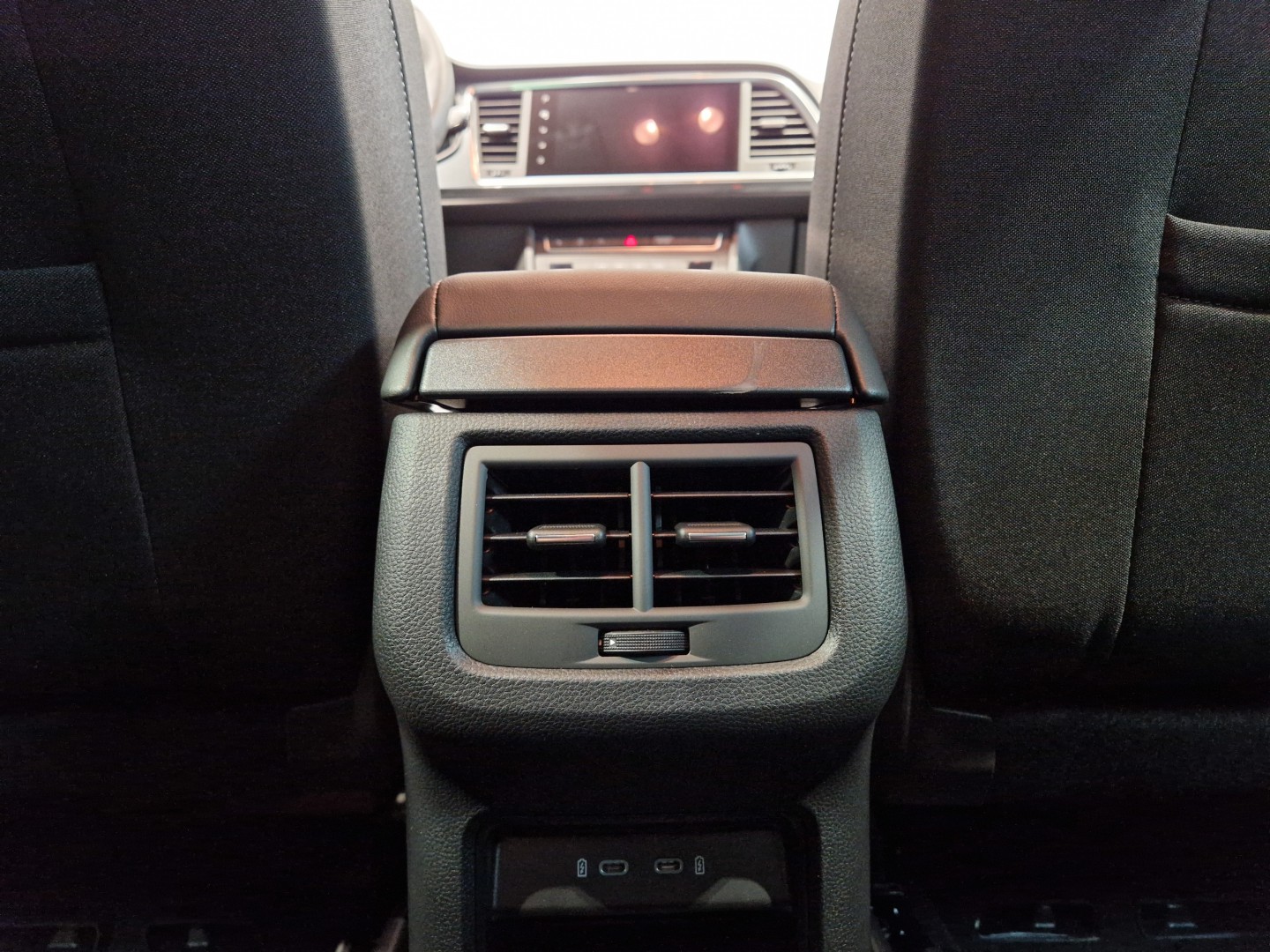 Reposabrazos en consola central con cajón integrado , posavasos y salidas de aires traseras