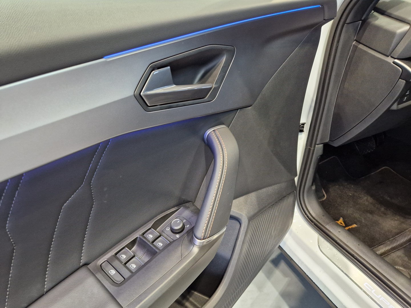 Estriberas iluminadas en puertas delanteras con logo Cupra