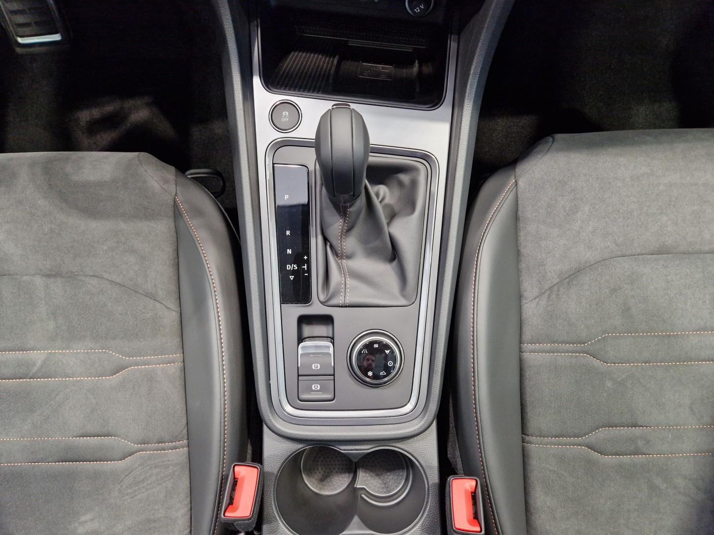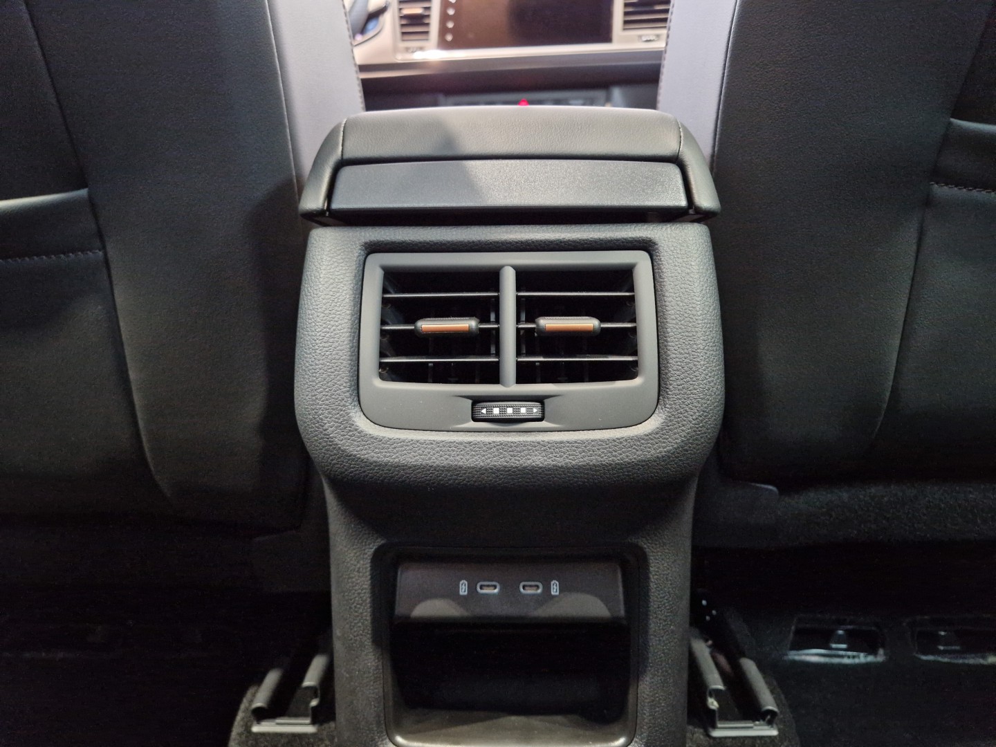 Reposabrazos en consola central con cajón integrado , posavasos y salidas de aires traseras