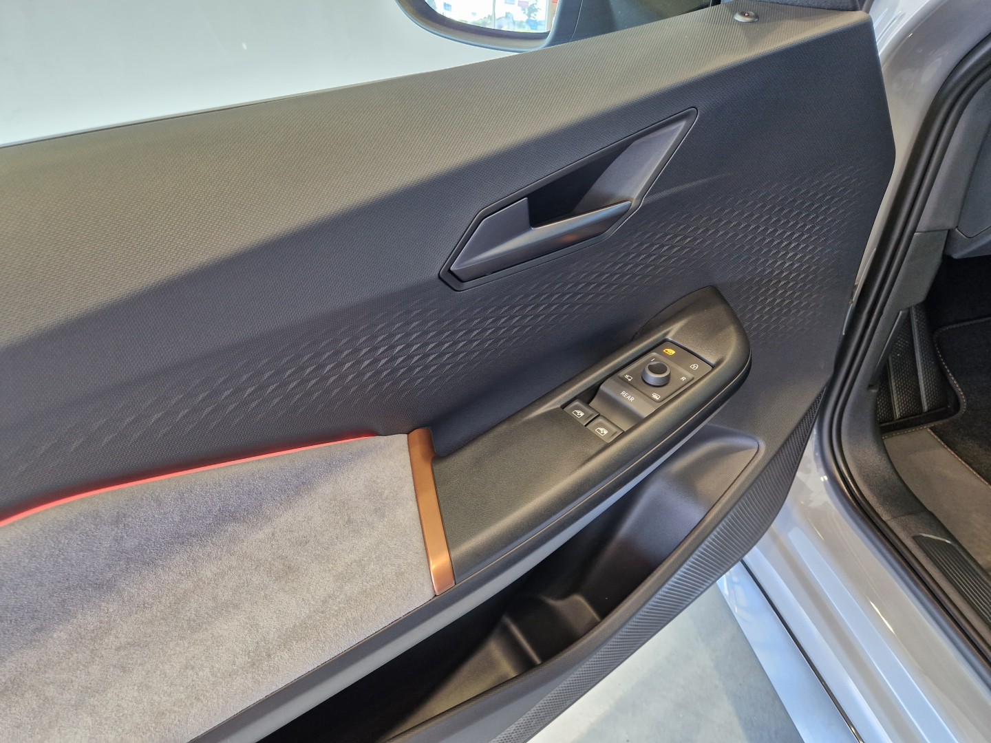 Luz de bienvenida con logo CUPRA bajo el retrovisor