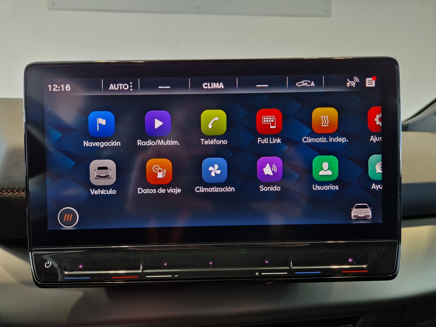 Sistema infoentretenimiento: Pantalla táctil a color de 30,5cm (12"), 4+1 altavoces, Reconocimiento. de voz natural, Full link inalámbrico, Bluetooth, Receptor de radio digital DAB