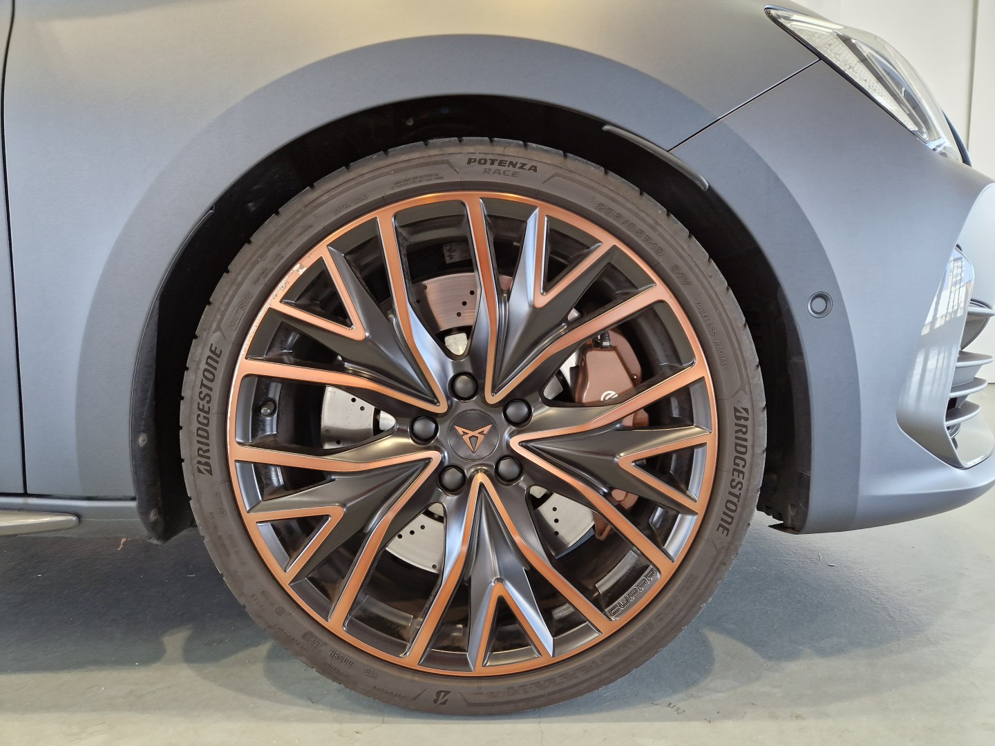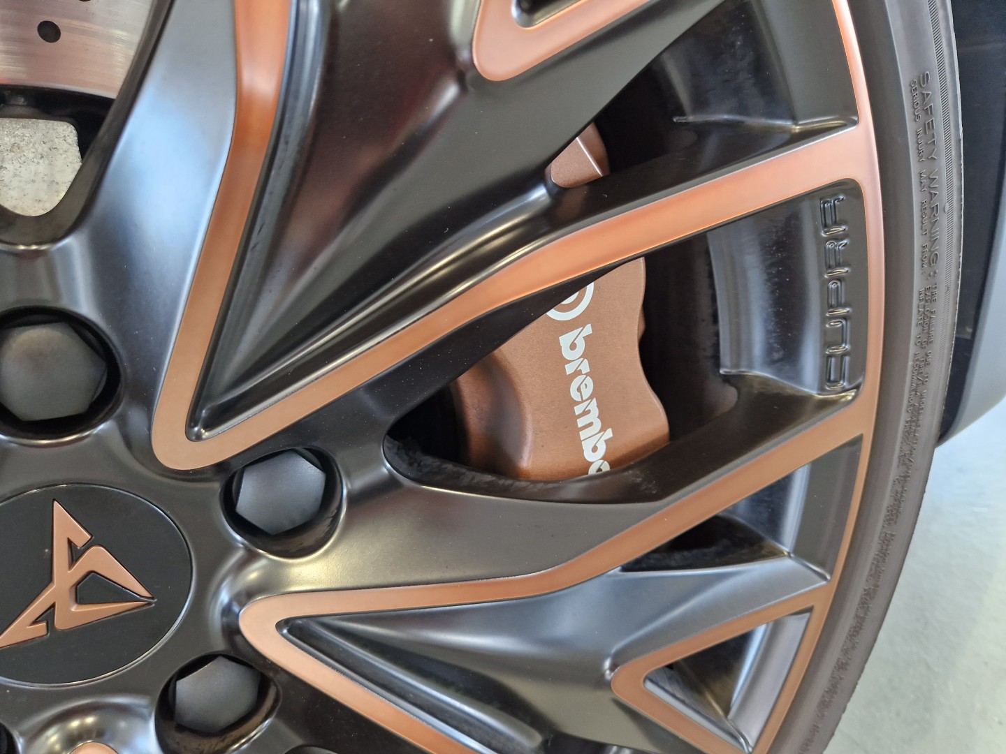 Discos de freno delanteros en color negro y lettering CUPRA