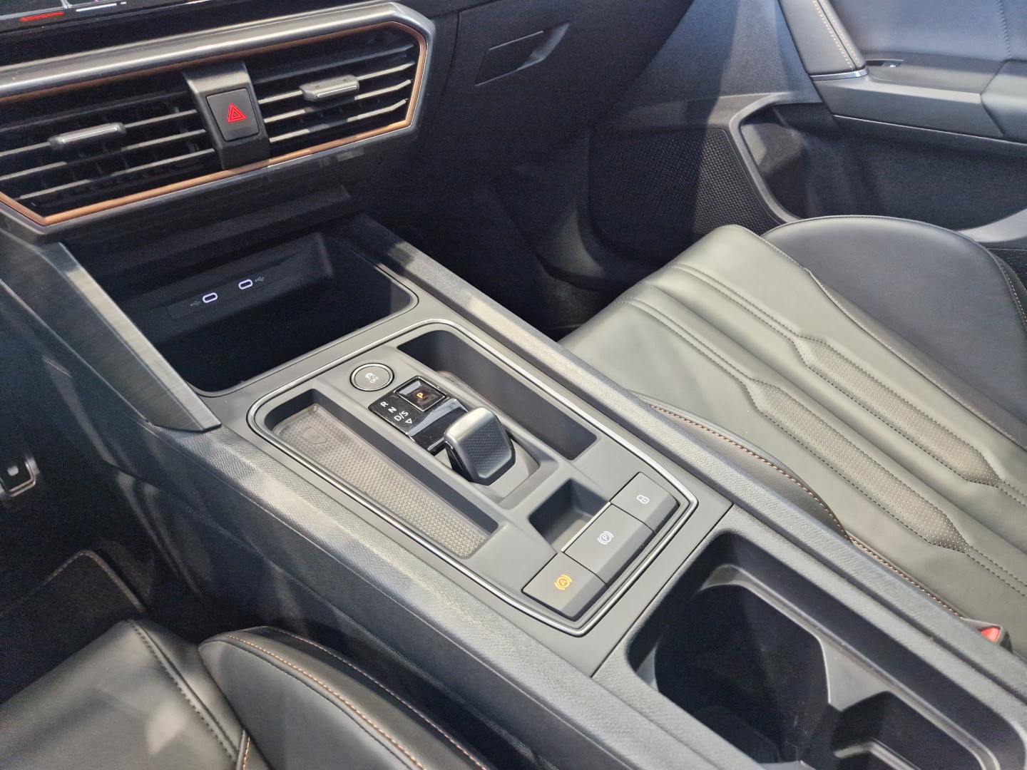 Reposabrazos en consola central con cajón integrado , posavasos y salidas de aire traseras