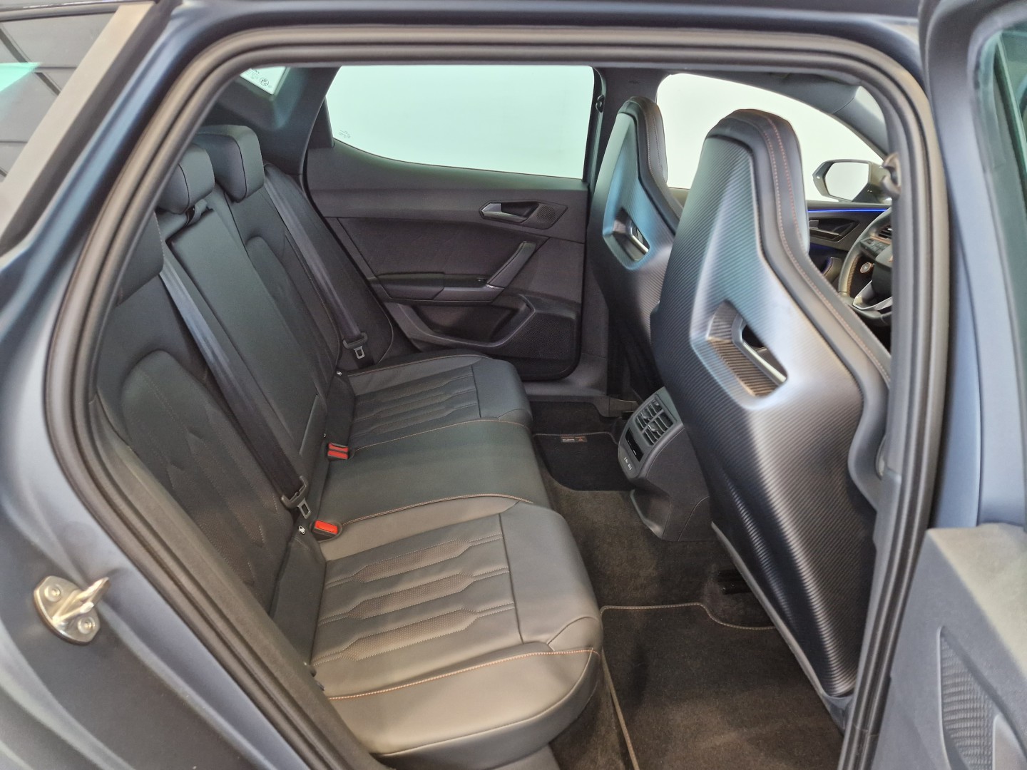 Asientos CUPBucket en piel calefactables, recubiertos en fibra de carbono por su parte posterior y con regulación manual