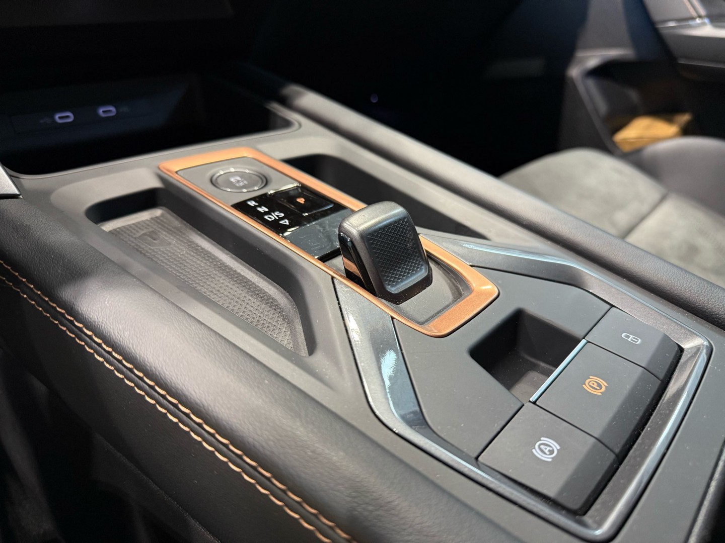 Reposabrazos en consola central con cajón integrado y salidas de aire traseras