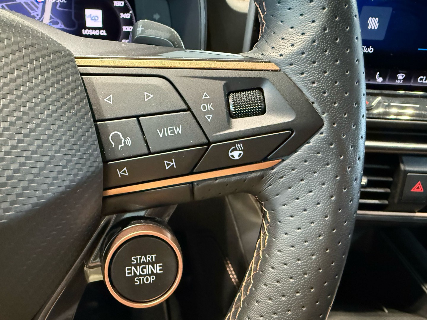 Volante deportivo en piel, calefactado con botones satélite y levas de cambio