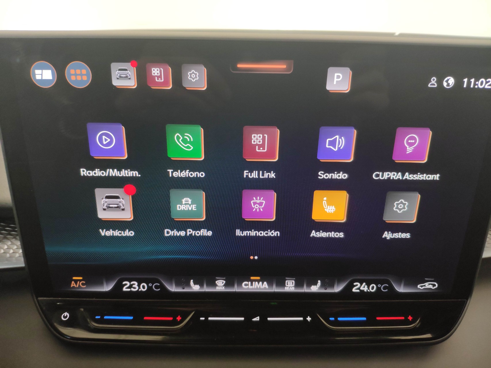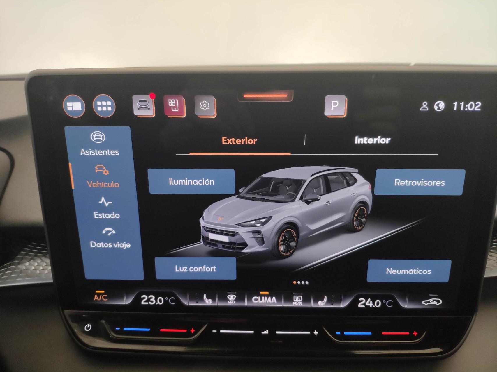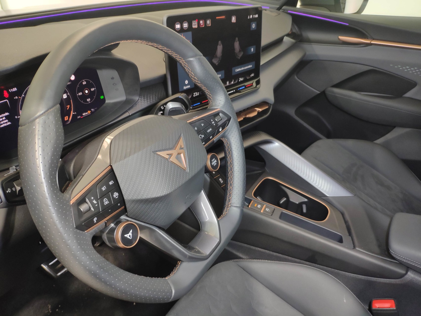 Asientos delanteros con regulación eléctrica, calefactados, ajuste lumbar con función memoria enlazado con retrovisores eléctricos. Tapicería DINAMICA. Luces ambiente interior.