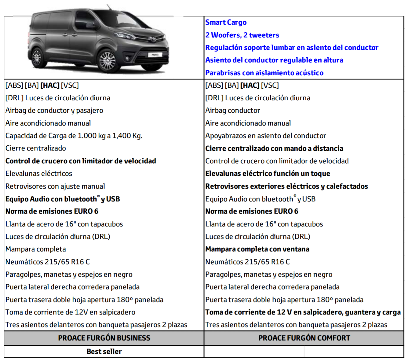 La nueva Proace dispondrá de 2 acabados, se podrán instalar la puertas laterales correderas eléctricas y el nuevo sistema de carga inteligente que permite plegar la base del asiento delantero para incrementar la longitud de carga en 1,16 m y volumen total de carga en 0,5 m3