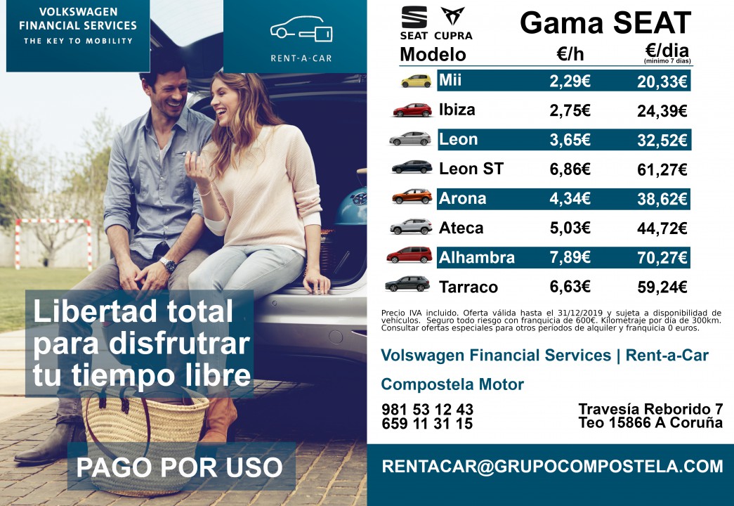 Recuerda que puedes alquilar tu coche en Compostela Motor en Santiago de Compostela o en Marineda Motor en A Coruña.